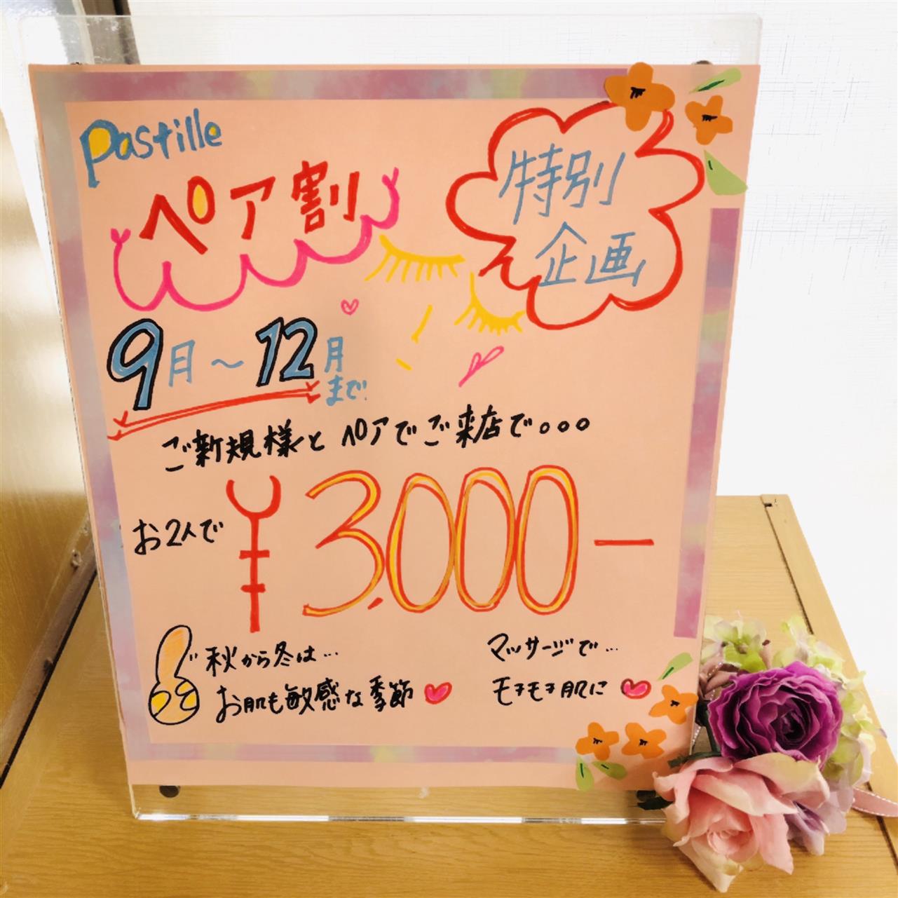 ・初めてのお客様とご一緒にご来店頂くと、エステ代金がお2人で¥3000-(税込)に!!