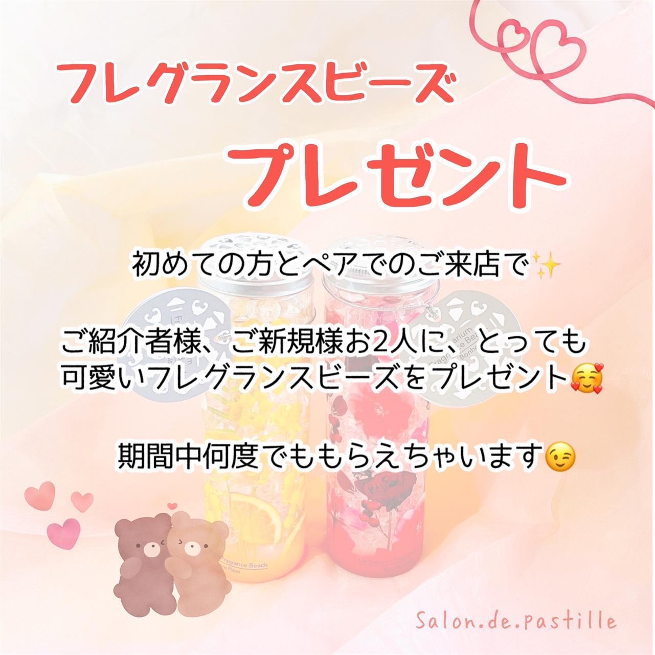 初めての方とペアでのご来店いただくと、ご紹介者様、ご新規様お2人に、とっても可愛いフレグランスビーズをプレゼント🥰